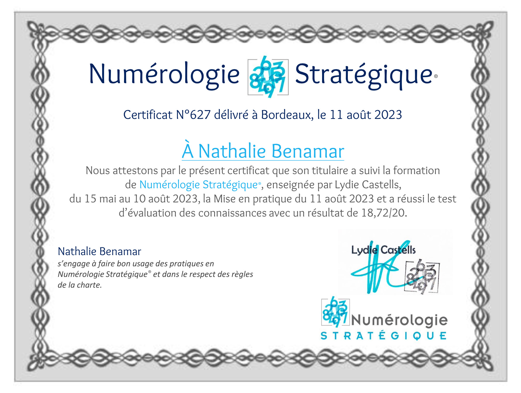 J’ai passé énormément de temps à me former en e-learning et cela sans m’en rendre compte. J’ai été certifiée en août 2023 juste avant de participer aux journées professionnelles de la Numérologie Stratégique ®.