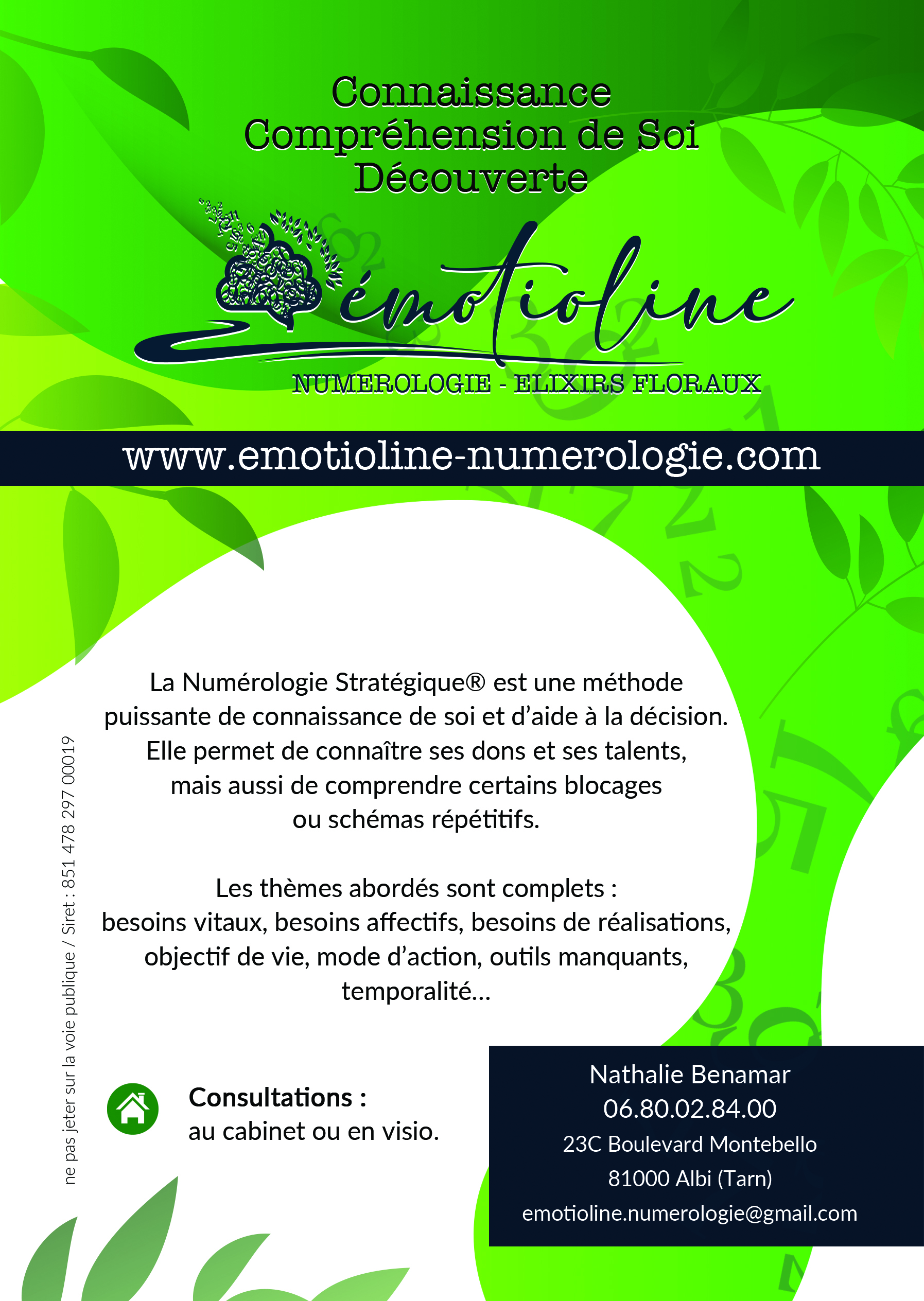 J’en profite pour vous rappeler que la Numérologie n’est pas de la voyance, elle vous indique ce qui peut vous être favorable, à vous ensuite de mettre en œuvre ce que vous souhaitez en gardant votre libre arbitre.